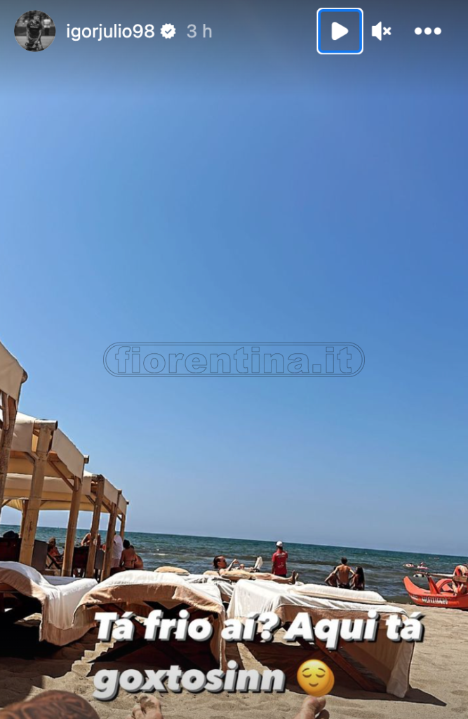 Oggi i calciatori della Fiorentina godono del primo giorno libero dall’inizio del ritiro. Il brasiliano Igor, vicinissimo alla cessione, ha scelto di rilassarsi al mare in attesa di rientrare a Firenze.