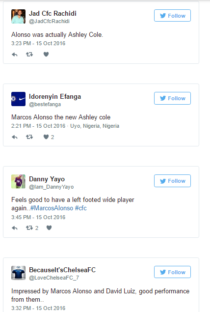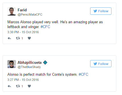La prima dal 1′ in casa, e prestazione superba nel 3-0 al Leicester. Marcos Alonso si prende le copertine al Chelsea, e fa già innamorare i tifosi Blues. ‘Alonso è il nuovo Ashley Cole’, ‘Perfetto per il gioco di Conte’, le reazioni social dei sostenitori del Chelsea. Alonso primo nelle classifica fisiche, chilometri percorsi e sprint, nella gara contro il Leicester di Ranieri.