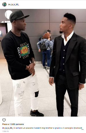 Incontro particolare per Khouma Babacar, che stamani ha postato su Instagram una foto con Samuel Eto’o. Questo il commento alla foto dell’attaccante della Fiorentina: “E sempre un piacere rivederti big brother e grazie x il consiglio @setoo9“. Chissà quale sarà il consiglio di Eto’o a Babacar…
