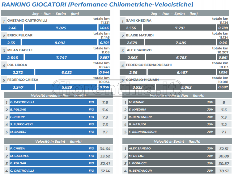 Contro la Juventus è stato ancora una volta il calciatore che ha percorso la distanza più elevata di tutti coloro che sono scesi in campo. E’ anche colui che ha messo a referto la velocità media in corsa più elevata, ed è a ridosso del podio quanto a rapidità nello scatto.