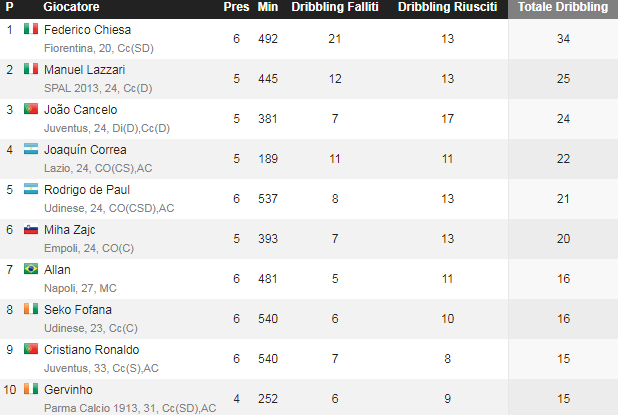 E nel caso di Chiesa, se si guarda la carta d’identità, fa quasi specie. Perché questa qualità la si nota, a volte, fin troppo poco. E’ lui ad aver tentato il maggior numero di dribbling in Serie A fin qui. Dato ancora prematuro, ma significativo. Con una percentuale di tentati/riusciti tuttavia lontanissima da quella dell’attuale esterno della Juventus, pressoché infallibile sul saltare l’uomo. Chiesa, invece, si ferma al 38%. Ma è comunque, dopo Cancelo, quello che ne ha fatti di più fin qui.