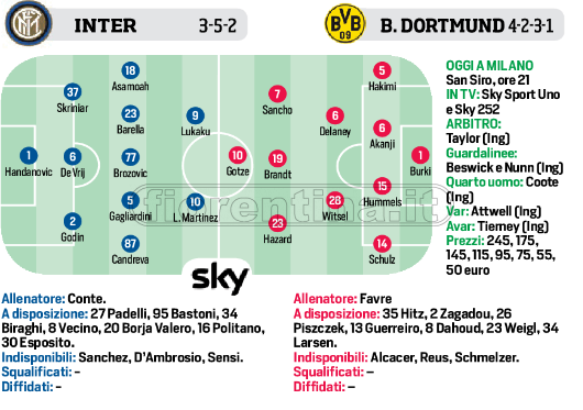 Dopo la vittoria della Juventus di ieri e il pesante ko dell’Atalanta, oggi tocca a Napoli e Inter. Gli azzurri impegnati col Salisburgo. Per Conte c’è il BVB