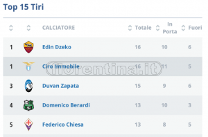 Le statistiche della Lega Serie A si sono aggiornate alla quarta giornata di campionato. Federico Chiesa è uno dei giocatori che tira di più nella massima serie. Fin qui, per il 25 viola, 13 conclusioni provate (8 finite nello specchio, 5 fuori). In questa speciale classifica è quinto, dietro a Dzeko, Immobile, Zapata e Berardi. Tutti giocatori che hanno già trovato la via della rete, mentre il talento viola è ancora fermo a zero.