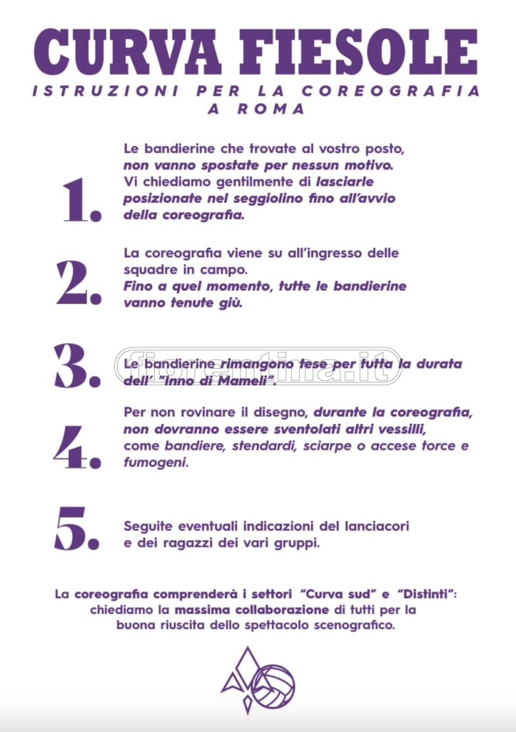 Coreografia che comprenderà i settori della Curva Sud e dei Distinti. Come accade in questi casi, attraverso i propri canali social, i ragazzi della curva hanno chiesto la collaborazione di tutti i presenti.
