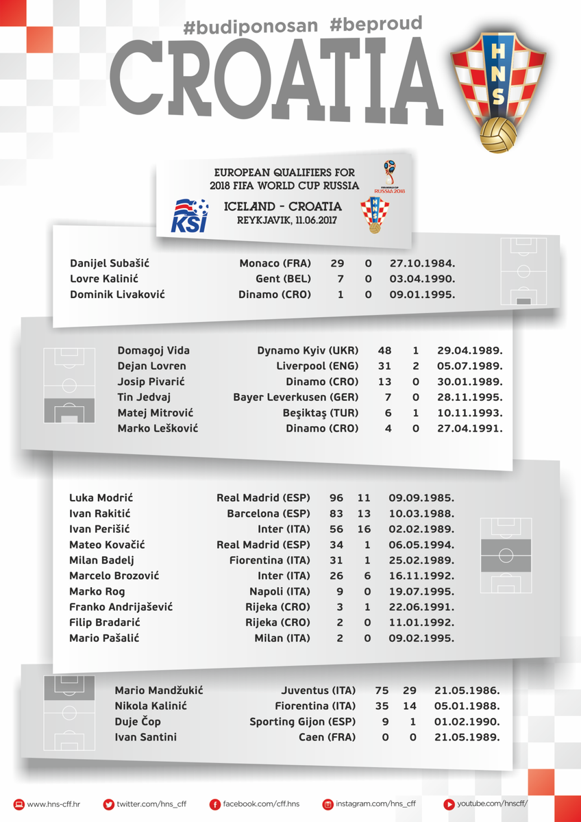 Sono stati convocati dal ct Ante Cacic per la sfida contro l’Islanda dell’11 giugno, i viola Nikola Kalinic e Milan Badelj. L’attaccante e il centrocampista della Fiorentina saranno con la Croazia nella sfida cruciale per il primo posto nel girone di qualificazione ai Mondiali: la Croazia è infatti prima con 13 punti, l’Islanda seconda con 10. Ecco i convocati: