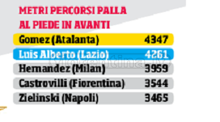 Gaetano Castrovilli è nella top 5 del campionato di Serie A alla voce calciatori che percorrono più metri verso la porta avversaria palla al piede.