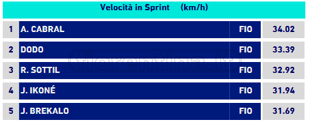 Contro lo Spezia Arthur Cabral non ha trovato la via del gol, per quanto lo abbia sfiorato in un paio di circostanze tra cui una rovesciata che si è infranta sulla traversa. L’attaccante della Fiorentina, reduce da 8 segnature nelle ultime 12 gare giocate dai viola in tutte le competizioni, nel match coi liguri di Semplici ha messo a referto la velocità in sprint più alta dei suoi e in assoluto della gara con oltre 34 km/h di velocità in scatto: