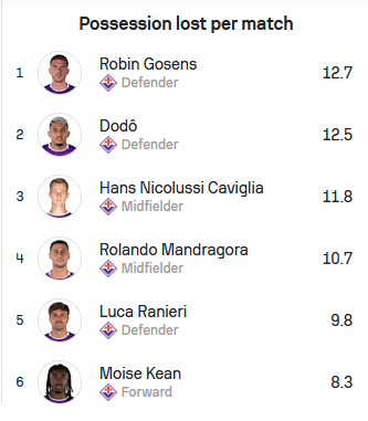PRIMATISTI. Come naturale conseguenza di tutto ciò, se si guarda ai dati Dodo e Gosens sono i due giocatori della Fiorentina che hanno perso il maggior numero di palloni di media a partita di questo avvio di Serie A dei viola.