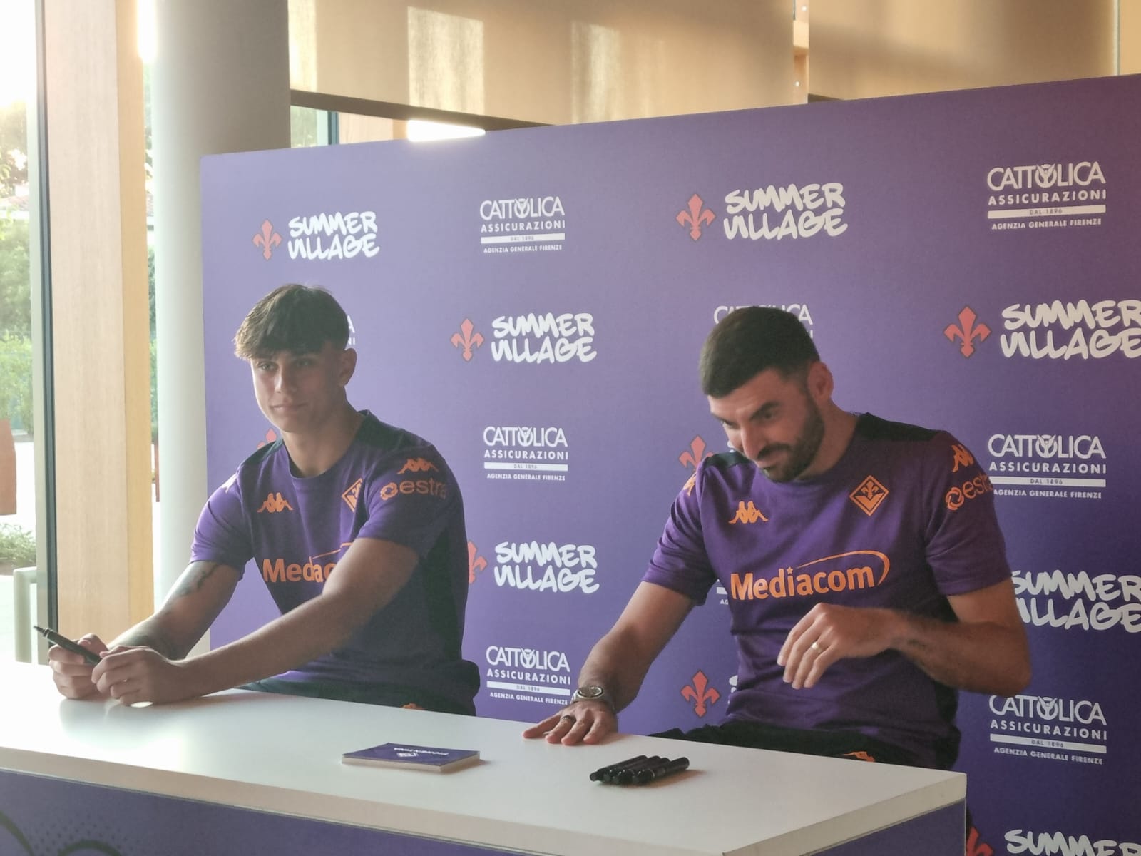 Sono i portieri i protagonisti della sessione di foto e autografi al termine dell’allenamento a porte aperte al Viola Park. Pietro Terracciano e Tommaso Martinelli si sono infatti concessi ai tifosi presenti al centro sportivo della Fiorentina.