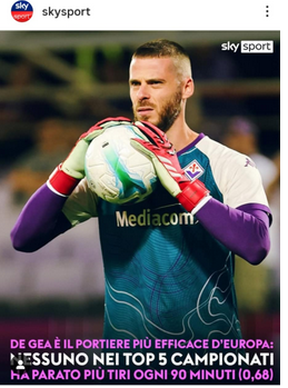 Attraverso i propri canali social Skysport celebra David De Gea. Lo spagnolo della Fiorentina, infatti, è il portiere che ha effettuato più interventi efficaci dei top5 campionati d’Europa di media a partita: