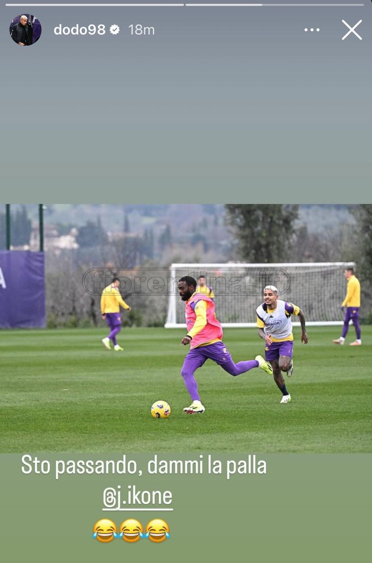 “Raga, sto benissimo. Nessuno mi ferma più”. Un Dodo sempre più carico si avvicina al ritorno in campo, dopo essere rientrato la scorsa settimana ad allenarsi in gruppo dopo l’infortunio. Oggi, sui social viola, il terzino ha lanciato ancora messaggi positivi sulla sua condizione fisica. Poi sui social un siparietto ha coinvolto anche Ikoné: “Sto passando, dammi la palla!”, ha scritto in una storia Dodo commentando una foto in cui si sta per sovrapporre (a sinistra) al francese.