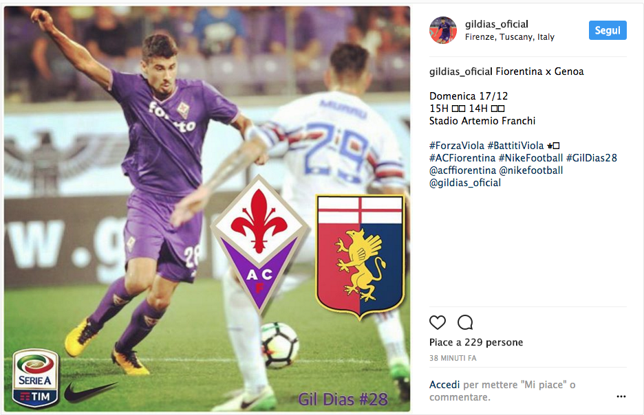 L’esterno d’attacco portoghese, Gil Dias, si proietta già verso la prossima sfida di campionato contro il Genoa. Ecco il post che ha pubblicato sul proprio profilo Instagram