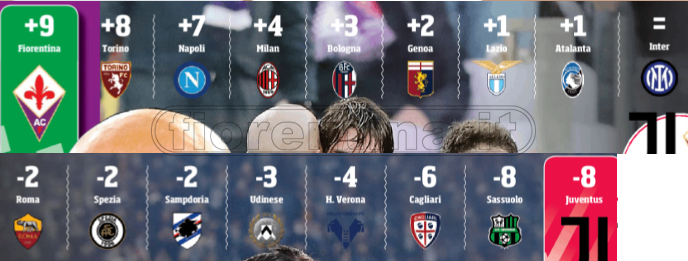 Come sottolinea il Corriere Dello Sport, all’undicesima giornata la Fiorentina è la squadra che ha guadagnato più punti rispetto a un anno fa. Sono ben 9 le lunghezze in più che ha la formazione di Vincenzo Italiano rispetto a quella di Iachini-Prandelli. E molti meriti di questo balzo in avanti li ha proprio il tecnico viola. Al contrario, finora Allegri non è riuscito, almeno in campionato, a invertire la grigia tendenza dell’ultima annata, anzi, l’ha perfino accentuata. Rispetto allo stesso punto della stagione scorsa, infatti, i bianconeri sono la squadra che ha fatto peggio, con 8 punti in meno raccolti.
