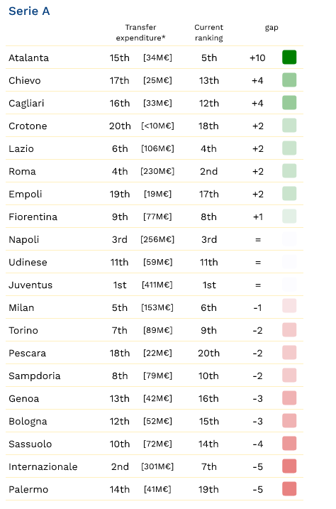 Investimenti-piazzamento: al top c’è l’Atalanta, la Fiorentina è ottava