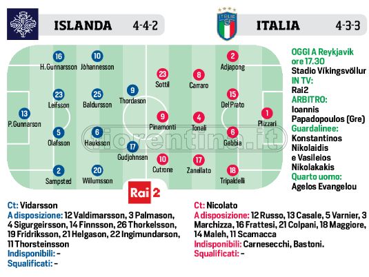 L’Italia Under 21 di Nicolato deve vincere assolutamente oggi contro l’Islanda. In campo dall’inizio l’attaccante viola Cutrone. Ed anche Sottil