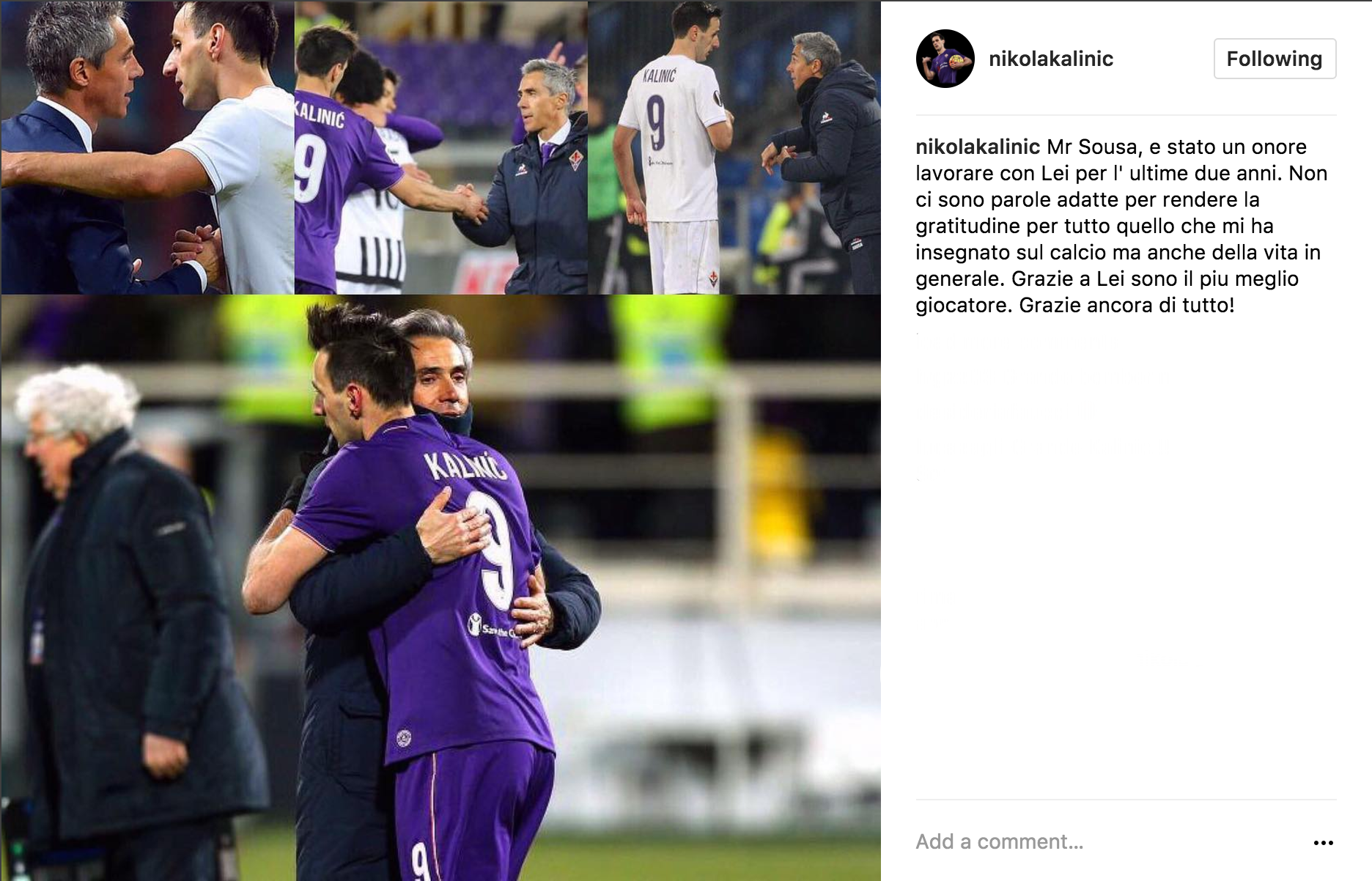 Nelle giornate dei congedi, non è mancato un commento di saluto anche da parte di Nikola Kalinic. L’attaccante croato ha ringraziato soprattutto Paulo Sousa, con un post pieno di gratitudine per i due anni trascorsi insieme alla Fiorentina. Entrambi destinati a lasciare la maglia viola, chissà se a ritrovarsi in altre avventure.