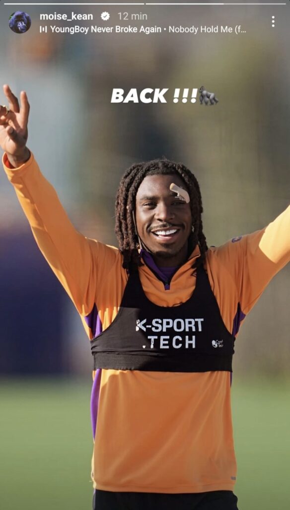 Dopo lo spavento di domenica scorsa a Verona, Moise Kean ha pubblicato una sua foto nelle storie Instagram per annunciare il suo ritorno ad allenarsi con la squadra al Viola Park: “Back“. Nella mattina di oggi il calciatore viola è stato infatti sottoposto agli accertamenti clinici e strumentali programmati. Visto l’esito positivo degli esami svolti il calciatore ha ripreso la regolare attività agonistica.