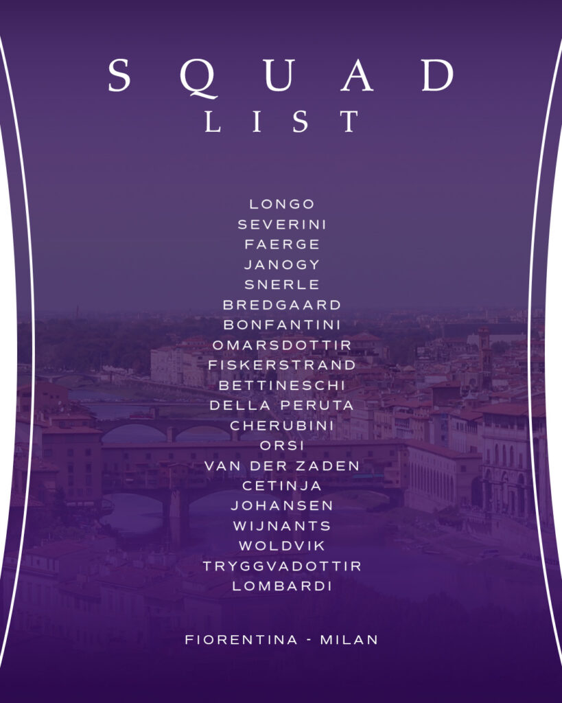 L’allenatore della Fiorentina Femminile, Pinones Arce ha diramato la lista delle convocate per la gara casalinga contro il Milan, in programma domani pomeriggio alle 15 al Viola Park: