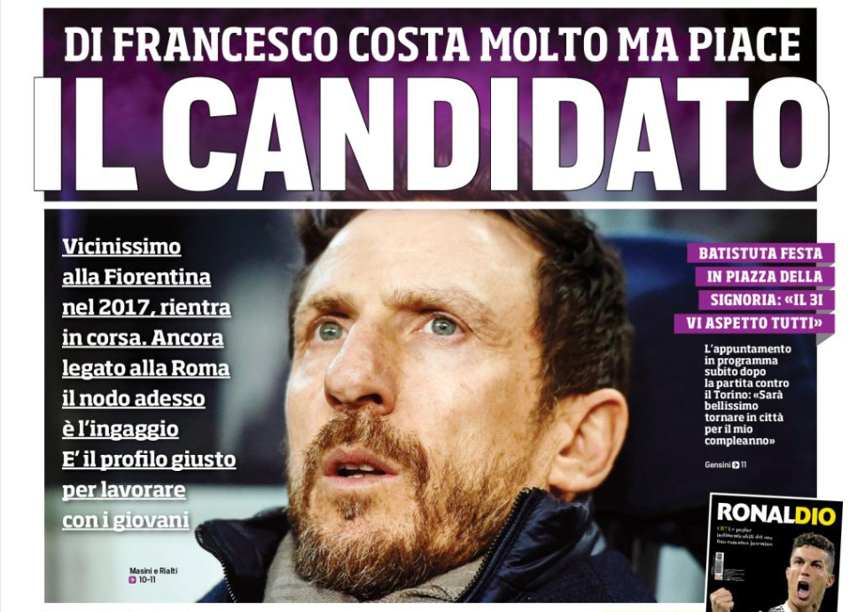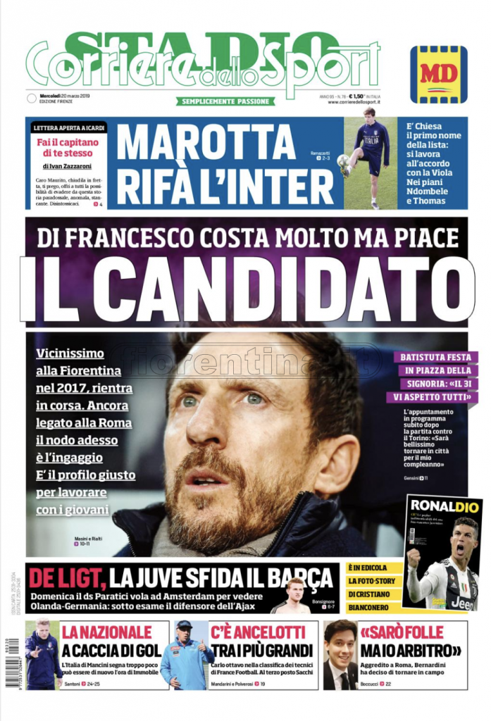 Queste le prime pagine di Qs-La Nazione, Stadio, Gazzetta, Corriere dello Sport, Tuttosport in edicola quest’oggi, mercoledì 20 marzo.