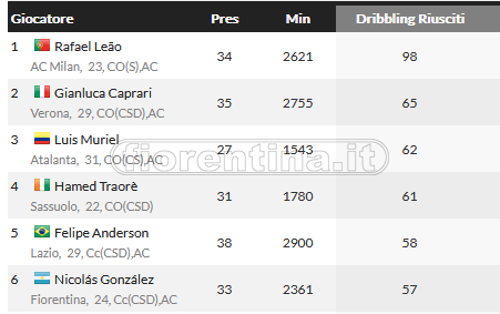 L’ivoriano, spesso decisivo anche nei momenti più difficili di questa stagione, è quarto per dribbling persi in Serie A, ma comunque secondo dei viola per tentativi riusciti.