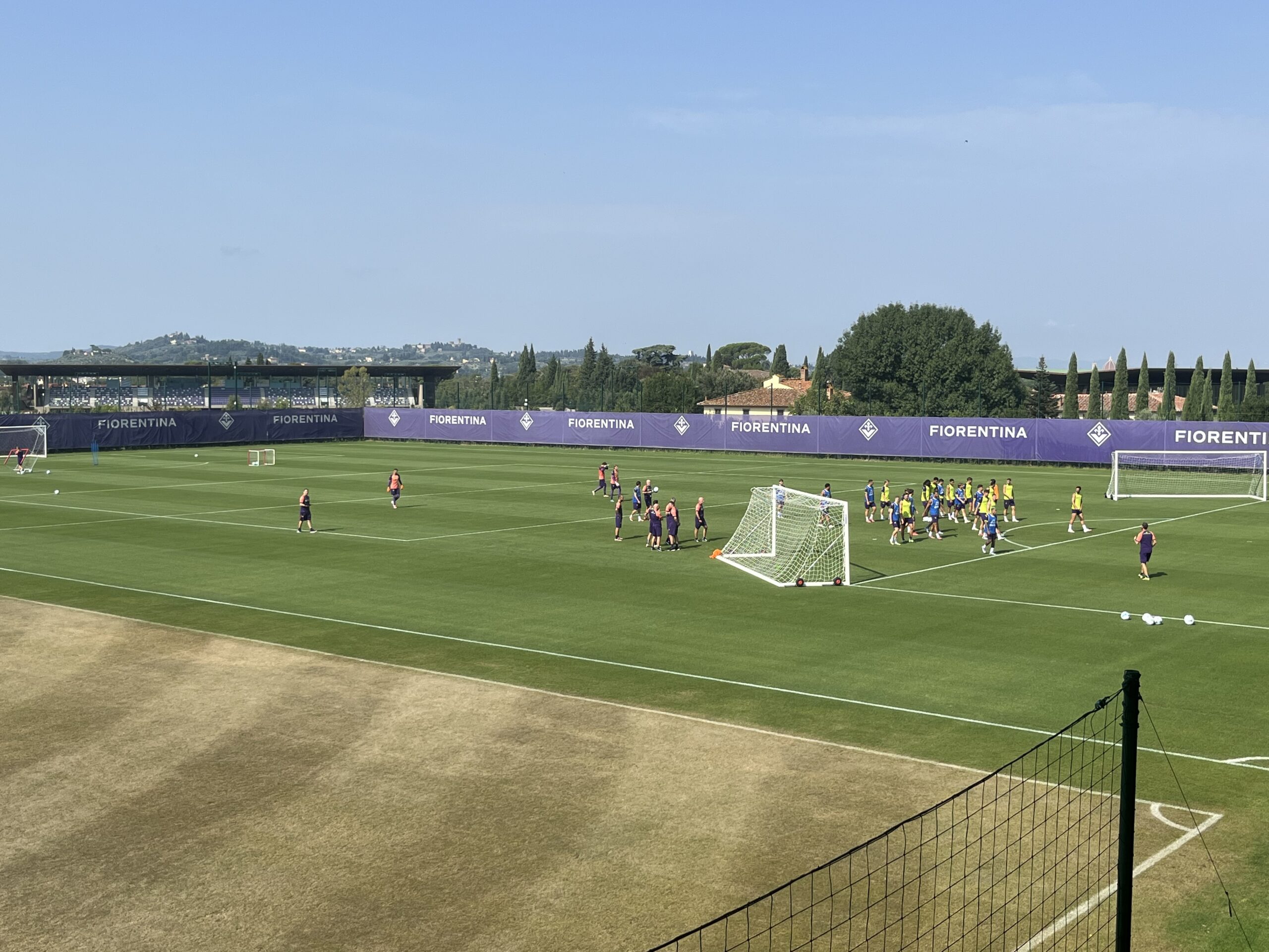 10:36 – Squadra in campo per una fase di riscaldamento dopo aver svolto alcuni esercizi in palestra. Presenti lo squalificato Kean e il neo viola Piccoli. In gruppo anche Comuzzo e Beltran al centro di voci di mercato, e i giovani Braschi, Kouadio, Leonardelli e Kospo