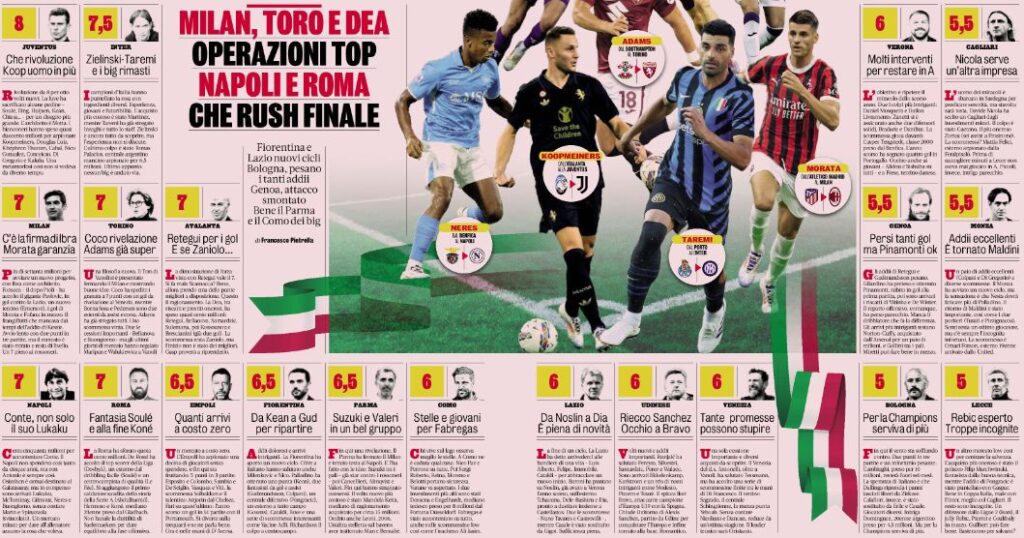Addii dolorosi e arrivi intriganti. La Fiorentina ha aperto un nuovo ciclo. Oltre a Italiano hanno salutato anche Milenkovic e Nico. Scrive La Gazzetta dello Sport nel pagellone del mercato di Serie A.
