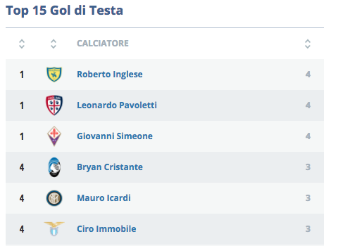 Da segnalare, comunque, che nei gol di testa Simeone ha pochi rivali. Nell’intero campionato guida la classifica di questa specialità insieme a Roberto Inglese e Leonardo Pavoletti. Tutti e tre sono a quota 4 reti realizzate di testa. Meglio di tutti, compresi Icardi ed Immobile.