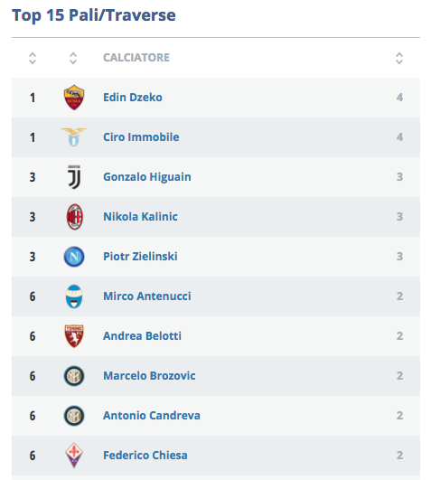 Infine concludiamo con i giocatori più sfortunati del torneo, ovvero quelli che hanno colpito più pali e traverse. Guidano la classifica Dzeko ed Immobile, ma Federico Chiesa è nella Top 10, avendone colpiti 2 in questo girone d’andata.