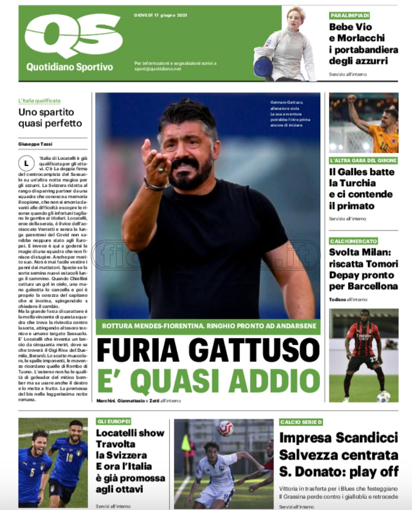 La giornata viola: il riassunto di mercoledì 16 giugno 2021 Se salta Gattuso la Fiorentina può tornare su Italiano (LEGGI QUI)...