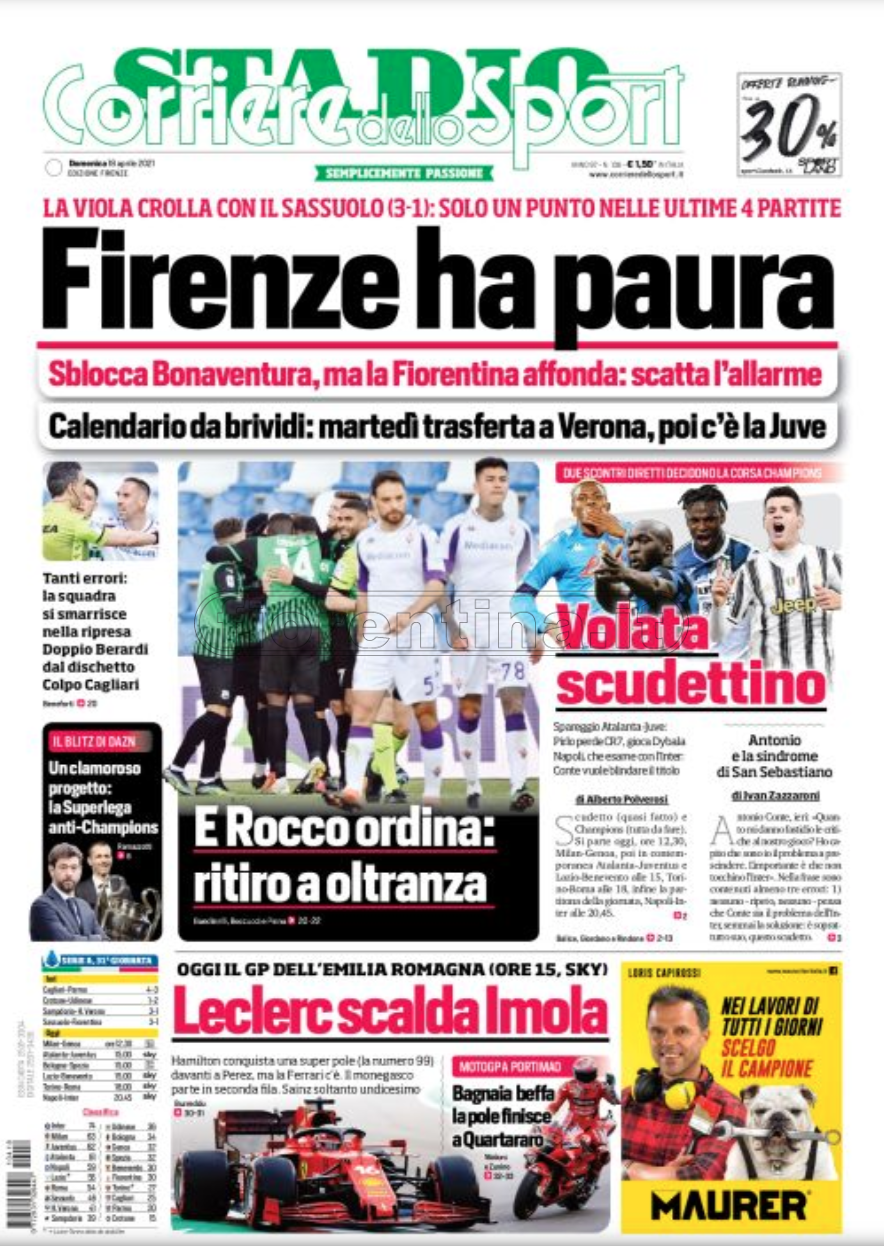 L’analisi de La Nazione, in edicola questa mattina, a firma di Angelo Giorgetti. La Fiorentina è chiamata a rialzarsi con le...