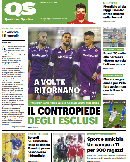 Queste le prime pagine dei quotidiani di Corriere dello Sport, Corriere dello Sport Stadio, Qs-La Nazione, Tuttosport e Gazzetta dello Sport in edicola questa mattina: