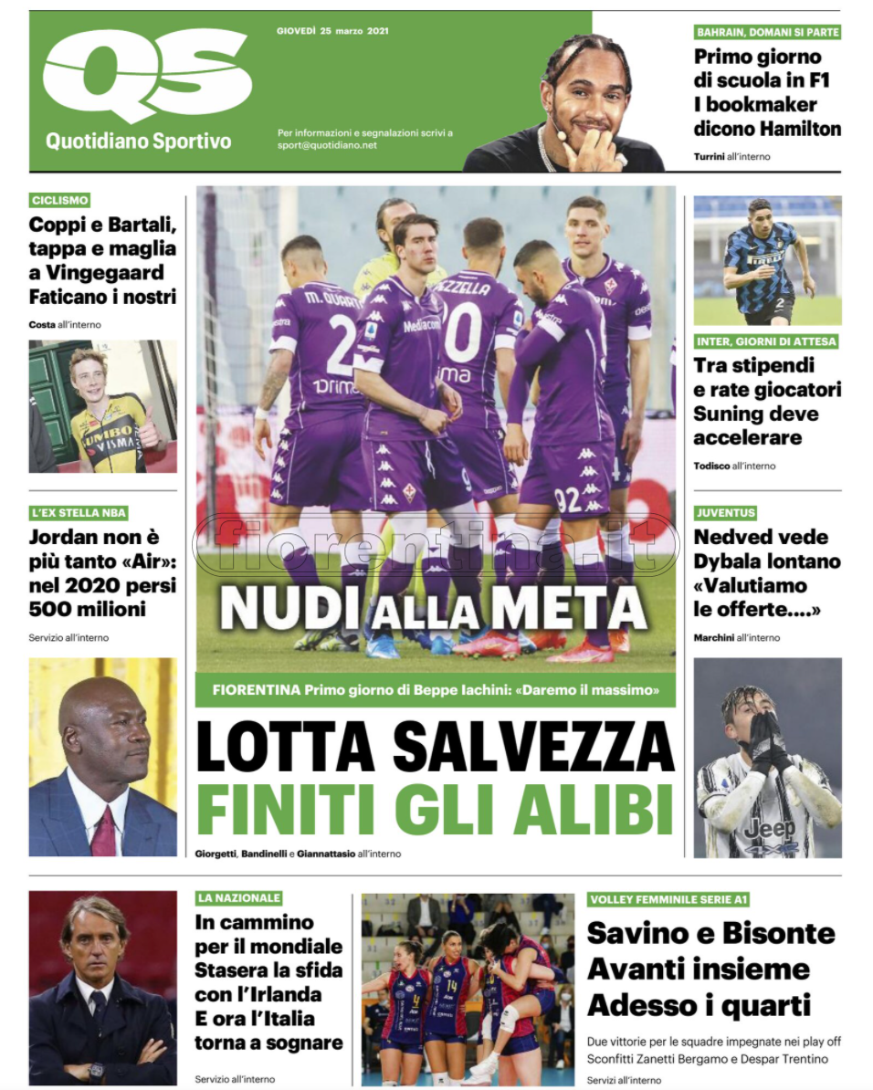 La Nazione in edicola stamani individua il rischio che adesso corre la Fiorentina, con i giocatori che potrebbero crearsi degli alibi...