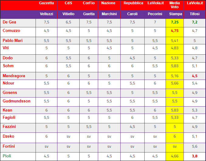 Sconfitta a San Siro per 3-0 contro l’Inter ieri per la Fiorentina. Questi i voti dei quotidiani nazionali e fiorentini, di LaViola.it e dei tifosi gigliati