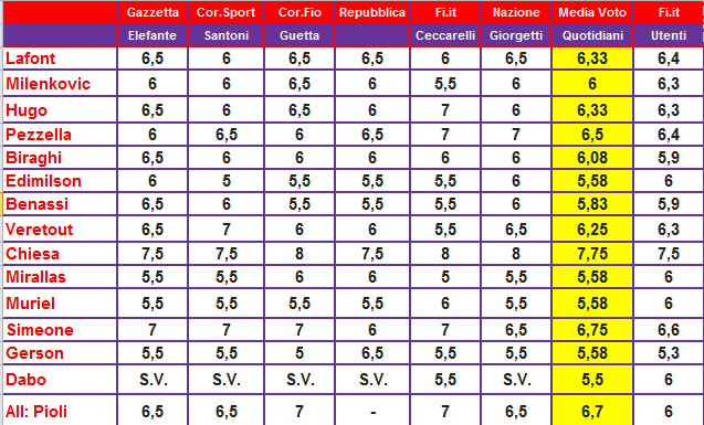Vittoria esterna per 0-2, contro il Torino, per la Fiorentina e passaggio conquistato ai quarti di Coppa Italia. Questi i giudizi a confronto della stampa nazionale e fiorentina e degli utenti di LaViola.it…