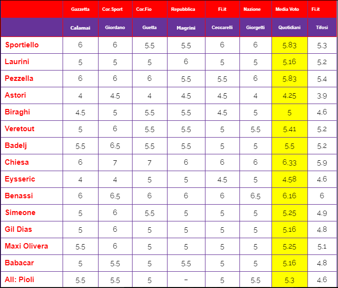 Sconfitta 2-1 allo Scida contro il Crotone per la Fiorentina. Questi i giudizi a confronto della stampa nazionale e fiorentina e degli utenti di LaViola.it…