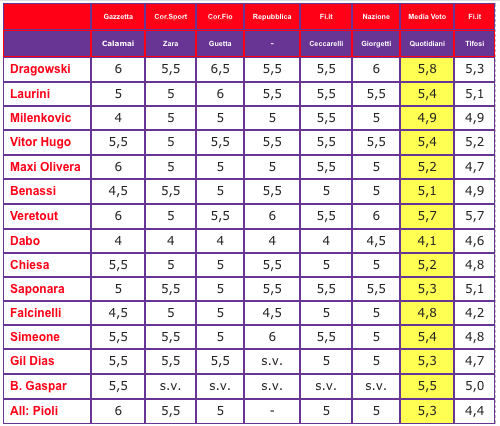 Come di consueto, il giorno dopo ogni partita, diamo uno sguardo alla pagelle delle testate locali e nazionali. Questi i voti a confronti di Sassuolo-Fiorentina.