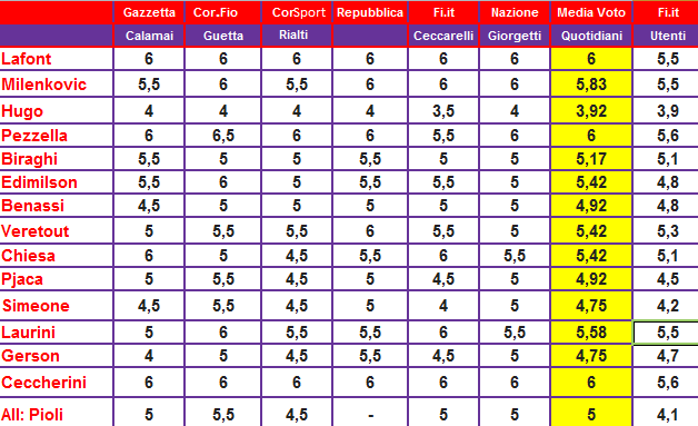 Sconfitta per 0-1 al Franchi, contro il Parma, per la Fiorentina. Questi i giudizi a confronto della stampa nazionale e fiorentina e degli utenti di LaViola.it…