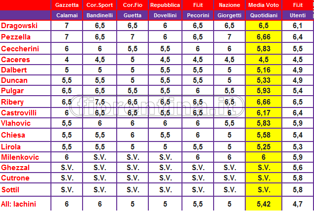 I giudizi a confronto della gara tra Fiorentina e Brescia di ieri delle prestazioni dei calciatori viola