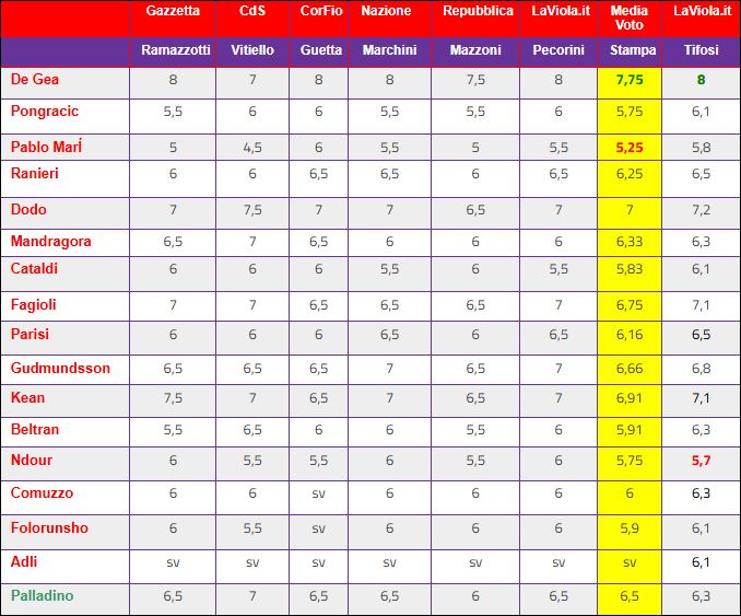 Pareggio 2-2 a San Siro contro il Milan ieri per la Fiorentina. Questi i voti dei quotidiani nazionali e fiorentini, di LaViola.it e dei tifosi gigliati