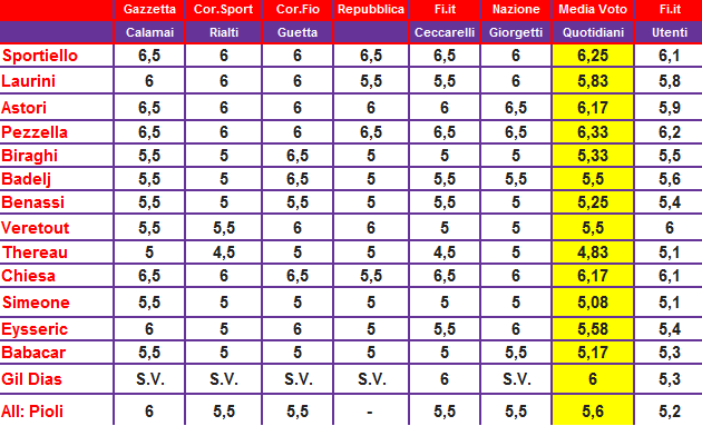 Pareggio per 0-0 in casa per la Fiorentina di Pioli contro il Genoa. All’indomani della gara del Franchi queste le valutazioni della stampa nazionale e fiorentina e degli utenti di LaViola.it…
