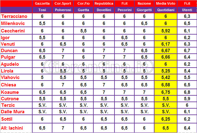 Questi i giudizi della stampa nazionale e locale e di LaViola.it delle prestazioni dei singoli della Fiorentina dopo la vittoria per 1-3 sul campo della Spal di ieri con i gol di Duncan, Kouame e Pulgar su rigore:
