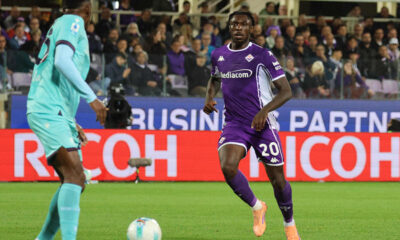 37′: Koffi serve Meli al limite dell’area. Il capitano viola serve Vlahovic in area. L’attaccante, defilato, scarica il mancino ma il pallone finisce sul fondo.