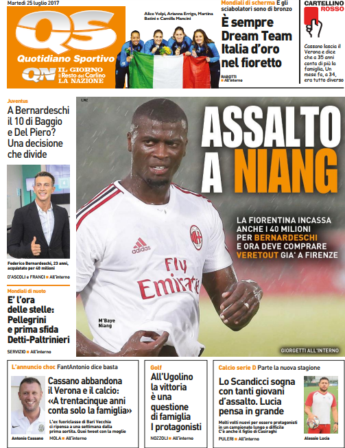 Queste le prime pagine dei quotidiani di Corriere dello Sport, Corriere dello Sport Stadio, Qs, Tuttosport e Gazzetta in edicola questa mattina: