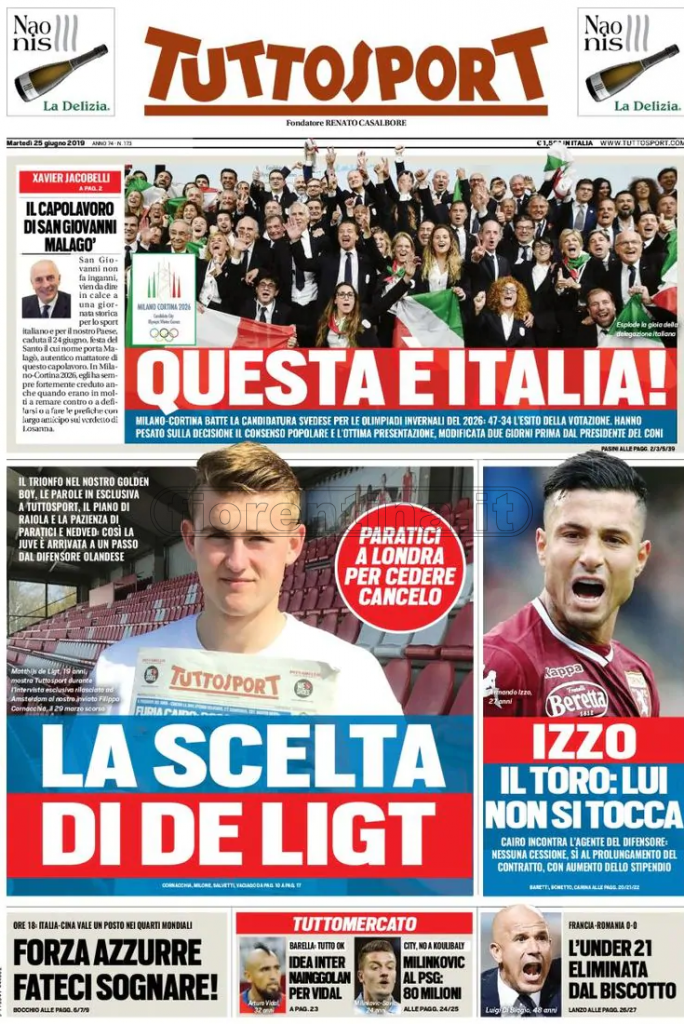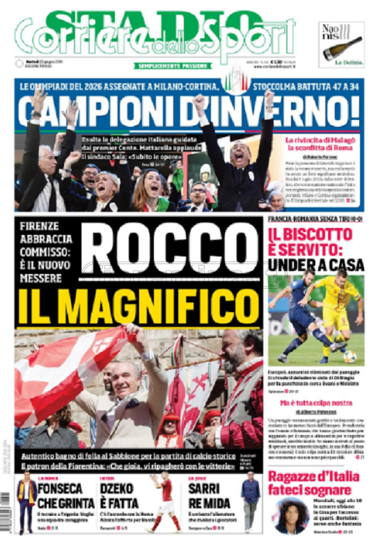 Queste le prime pagine dei principali quotidiani sportivi in edicola questa mattina:
