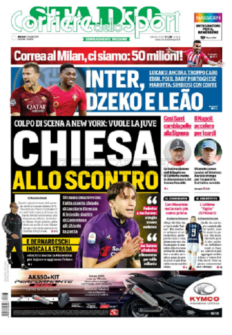 Queste le prime pagine dei quotidiani di Corriere dello Sport, Corriere dello Sport Stadio, Qs-La Nazione, Tuttosport e Gazzetta dello Sport in edicola questa mattina: