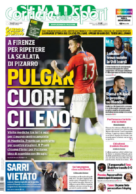 Queste le prime pagine dei quotidiani di Corriere dello Sport, Corriere dello Sport Stadio, Qs-La Nazione, Tuttosport e Gazzetta dello Sport in edicola questa mattina: