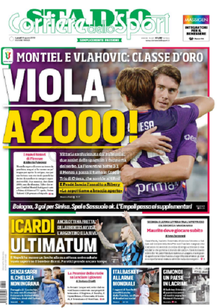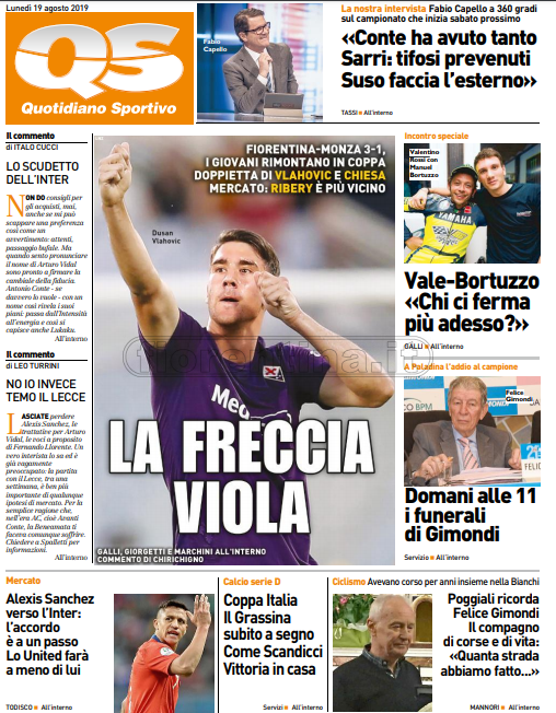 Queste le prime pagine dei quotidiani di Corriere dello Sport, Corriere dello Sport Stadio, Qs-La Nazione, Tuttosport e Gazzetta dello Sport in edicola questa mattina:
