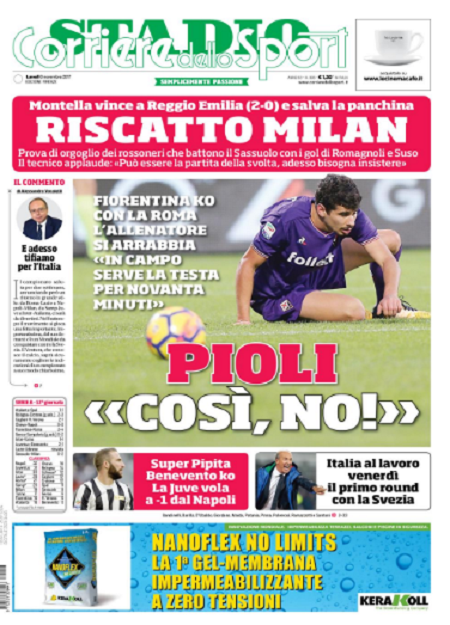 Queste le prime pagine dei quotidiani di Corriere dello Sport, Corriere dello Sport Stadio, Qs-La Nazione, Tuttosport e Gazzetta dello Sport in edicola questa mattina: