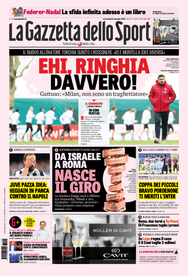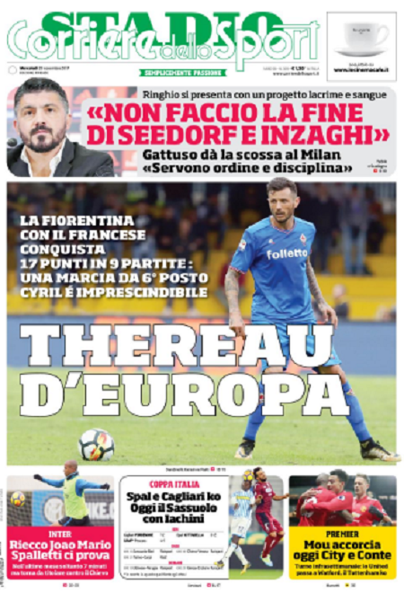 Queste le prime pagine dei quotidiani di Corriere dello Sport, Corriere dello Sport Stadio, Qs-La Nazione, Tuttosport e Gazzetta dello Sport in edicola questa mattina: