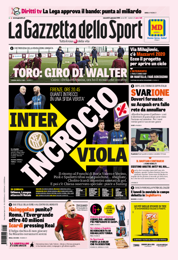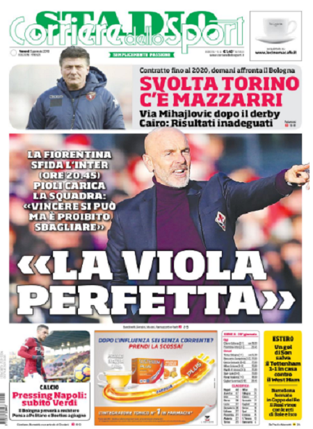 Queste le prime pagine dei quotidiani di Corriere dello Sport, Corriere dello Sport Stadio, Qs-La Nazione, Tuttosport e Gazzetta dello Sport in edicola: